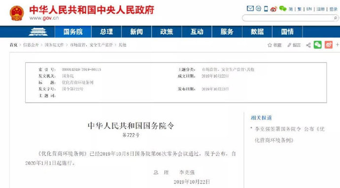 日前,國務院令第722號《優化營商環境條例》公布,自2020年1月1日起施行。《優化營商環境條例》從根本上加強了對政府投資資金的預算約束,要求政府投資項目不得由施工單位墊資,有關部門不得非法干預工期,及時辦理竣工財務決算;重點強調最大限度減少政府對市場資源的直接配置,最大限度減少政府對市場活動的直接干預,堅持權利平等、機會平等、規則平等,加強對各類市場主體的平等保護,落實市場主體公平待遇。國家機關、事業單位不得違約拖欠工程、服務等賬款。
